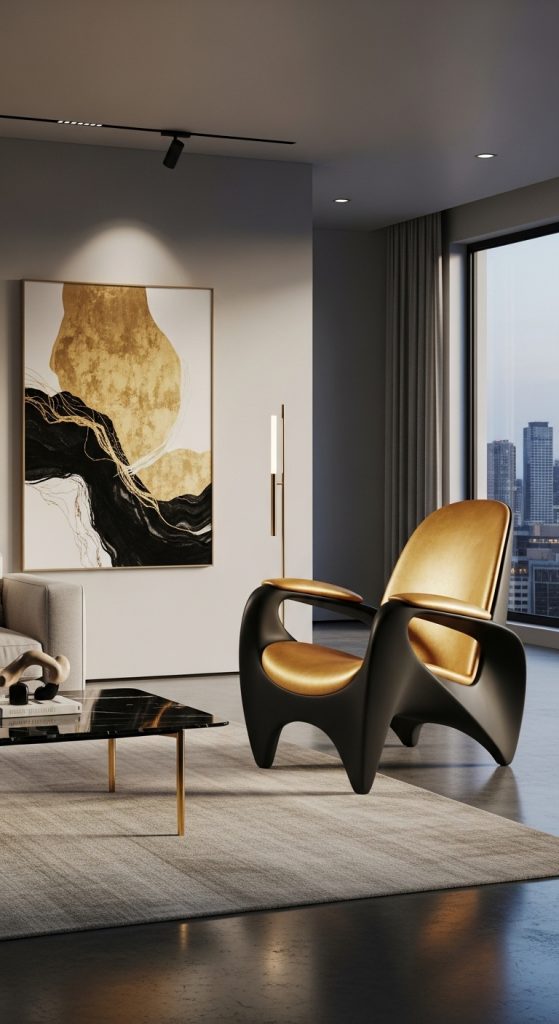 Luxury isn’t always about traditional designs—sometimes it’s about artistry. Sculptural accent chairs with unusual shapes or abstract designs can serve as functional art pieces. These chairs often feature curvaceous frames, mixed materials like leather and metal, or even innovative 3D-printed forms. They’re perfect for modern, eclectic spaces where the chair itself becomes the centerpiece.