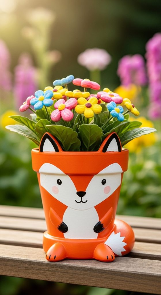 Bring out your playful side with animal or character designs. Turn a pot into a cute owl, fox, or cat by painting eyes, ears, and whimsical patterns. These pots are a hit with kids and add a charming, fun vibe to your garden or balcony. They can also be used for themed parties or as quirky gifts.