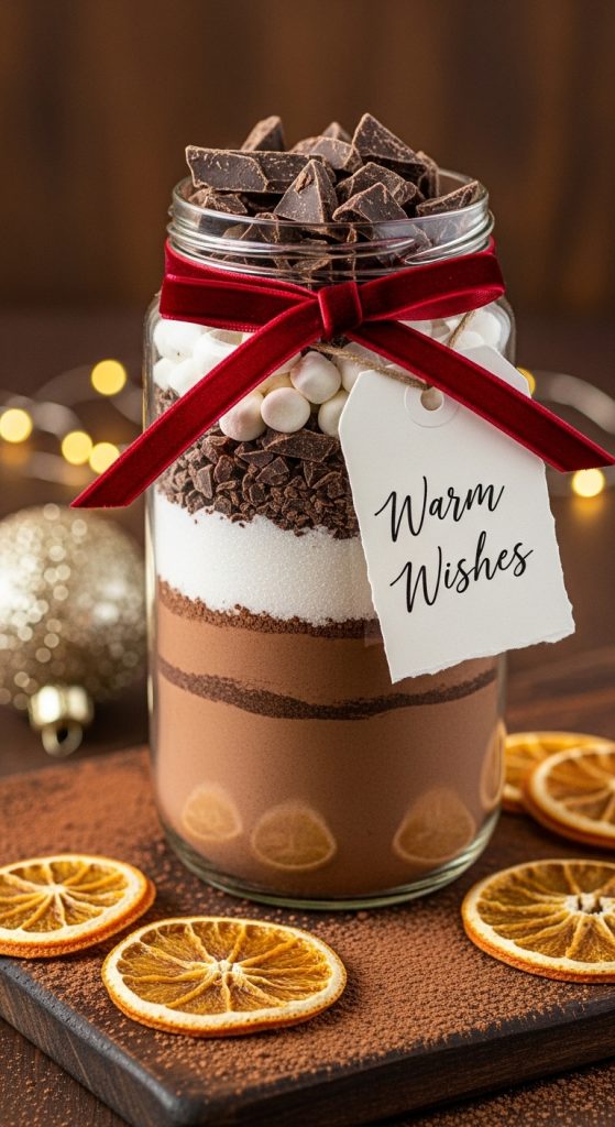 Jar mixes are charming, practical, and customizable. Try ideas like hot cocoa mix layering with mini marshmallows, holiday cookie dry ingredients, chai spice blend, or savory dip mix. Layer the components in a luxurious glass jar (wide mouth or hermetic), then decorate with a ribbon, tag, or mini spoon attached.