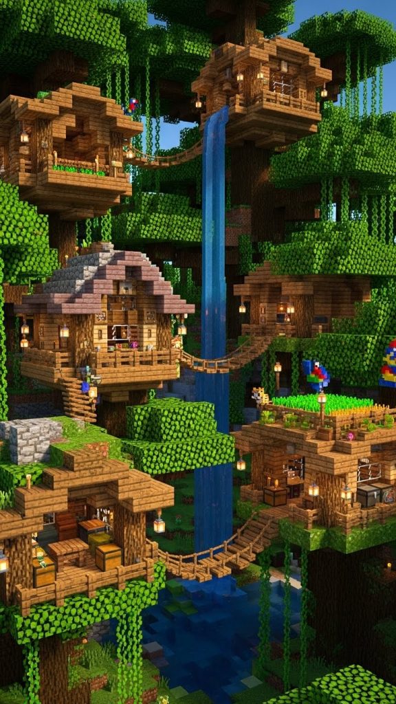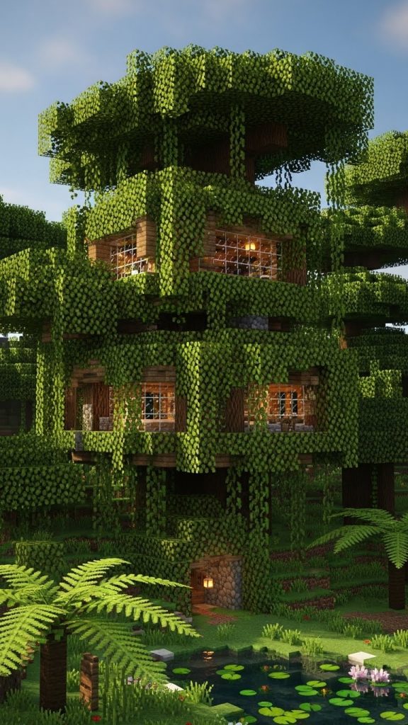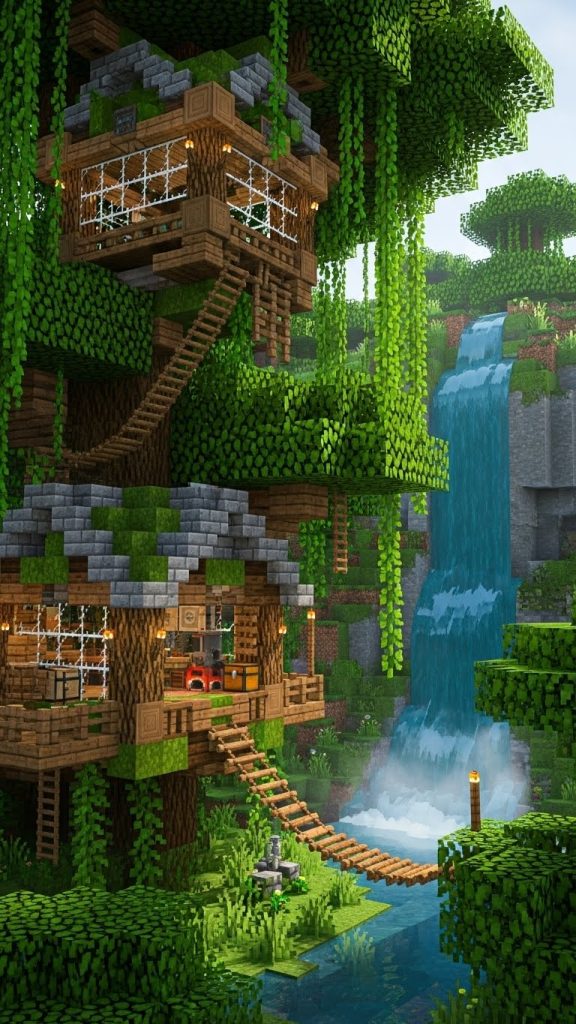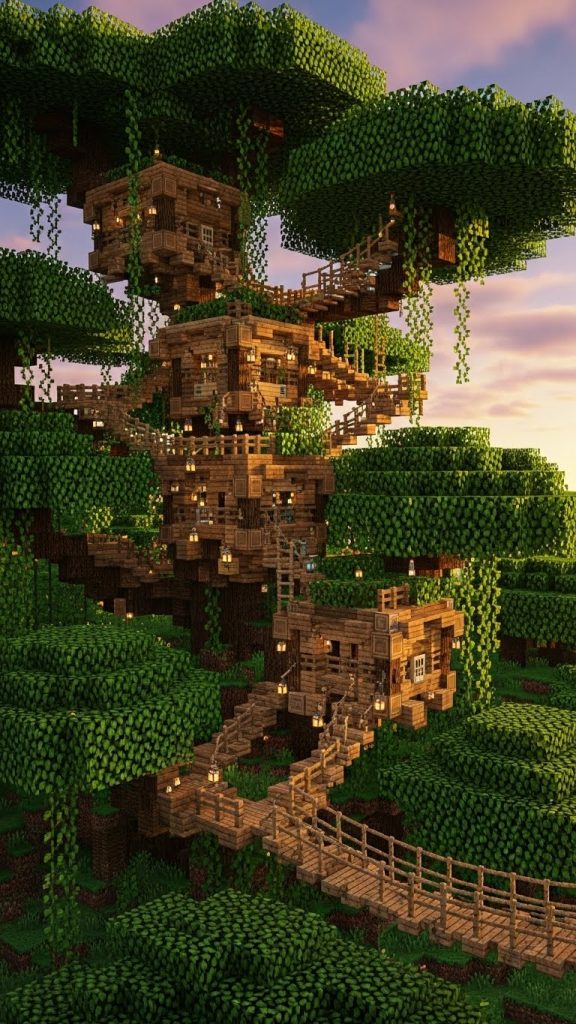 Minecraft’s jungle biome feels like it was made for dreamers. Towering trees, hanging vines, soft green light filtering through leaves, and the constant feeling of being hidden above the ground make it one of the most magical places to build. When you combine the jungle biome with a survival playstyle, tree houses become more than decoration—they turn into safe havens, creative expressions, and immersive homes that feel alive.