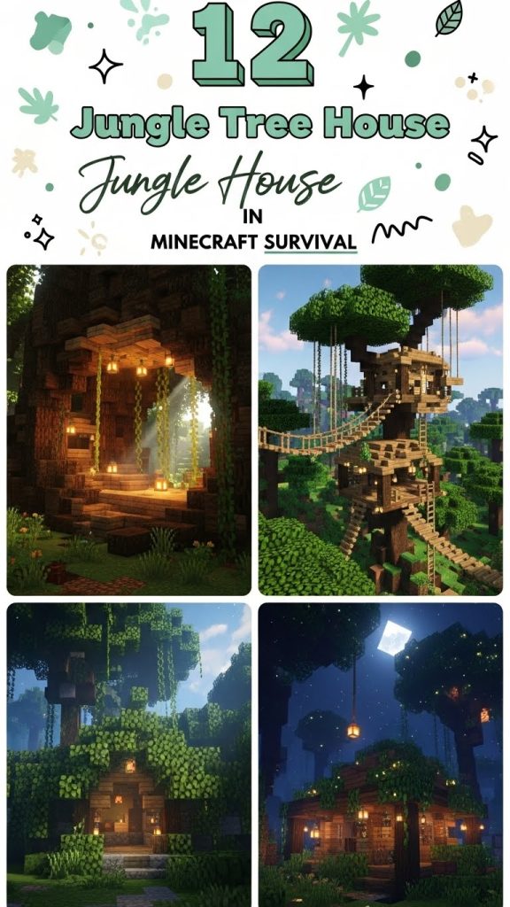Below are aesthetic jungle tree house ideas designed specifically for Minecraft survival, focusing on realism, warmth, and visual storytelling—perfect for Pinterest inspiration and long-term worlds.