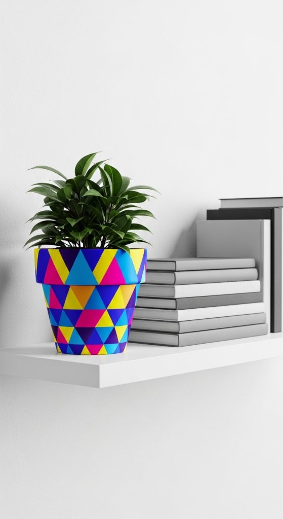 Geometric shapes like triangles, diamonds, or hexagons add a modern edge to your flower pots. Choose bold colors for a statement piece or subtle pastels for a Scandinavian-inspired look. The combination of shapes and patterns can create a visually stunning effect that is both contemporary and artistic.