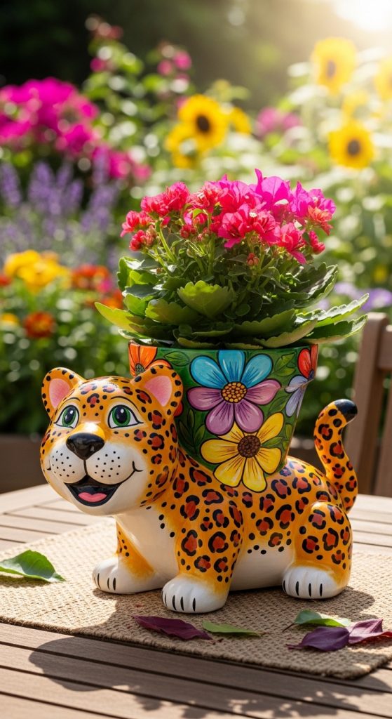 For a fun and unexpected twist, try animal print patterns on your pots. Leopard spots, zebra stripes, or giraffe patterns can add a playful, bold vibe. Pairing animal prints with bright or neutral base colors makes your pots stand out as quirky décor items.