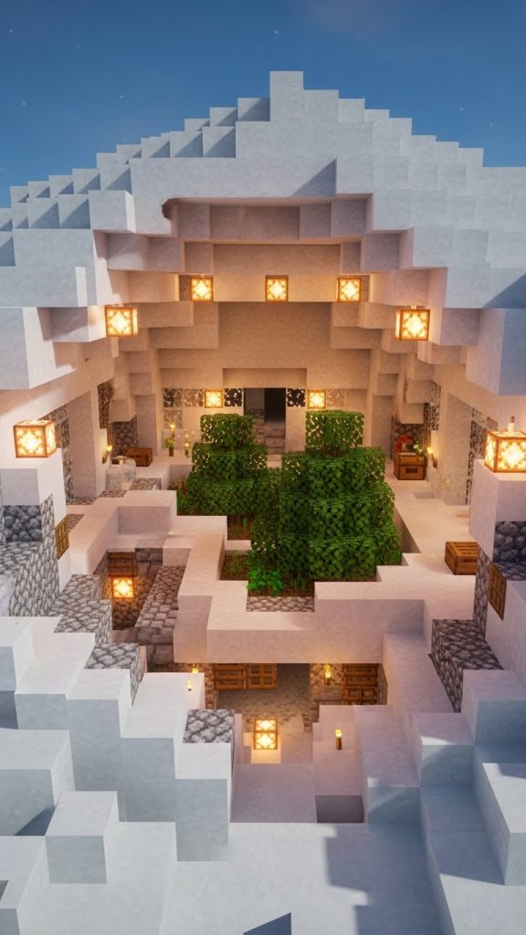 - Lighting Matters: Lanterns, torches, and glowstone add warmth to cold builds.