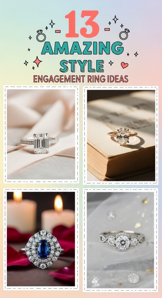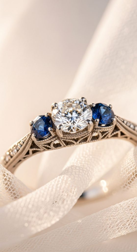 Vintage-style versions often feature ornate settings with milgrain detailing and side stones like sapphires or emeralds.