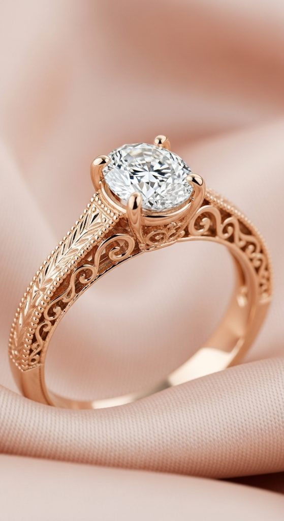 Look for intricate engravings on the band, such as leaves, scrolls, or hearts.