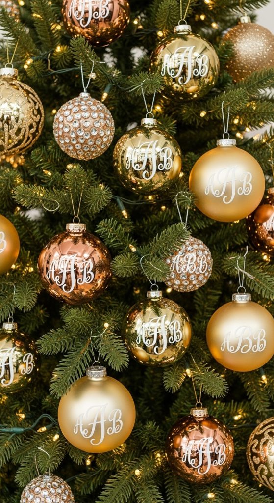 Paint a bauble in a metallic shade (gold, rose gold, or platinum). Use a stencil or vinyl sticker to apply initials in contrasting tones—like white monograms on gold. Finish with a crystal embellishment. - Why It Works: