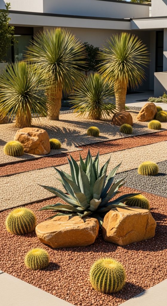 Xeriscaping is not only beautiful—it’s also eco-friendly and extremely low maintenance. Perfect for dry climates, desert-inspired landscaping embraces stones, gravel, succulents, and drought-tolerant plants.