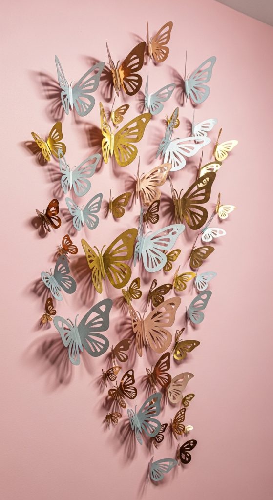 Add instant sophistication to a space with three-dimensional paper art. Cut paper into layers and shapes—like butterflies, abstract geometric forms, or floral patterns—and mount them on canvases or directly on walls. By layering and arranging them carefully, you create a luxurious texture and depth that turns any wall into a gallery piece.