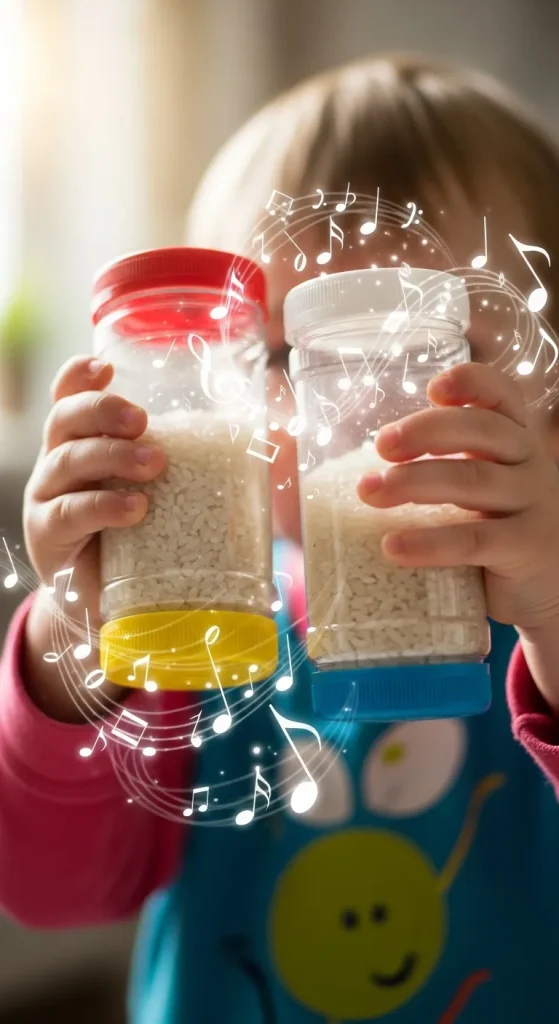 Turn empty plastic containers from Dollar Tree into mini musical instruments. Fill them with rice, beans, or beads, and seal them securely.