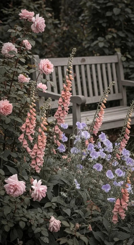 Soft, muted tones and antique shades create a garden with old-world charm. Dusty pink, muted lavender, faded peach, and cream work well in this palette. Flowers like antique roses, foxgloves, and sweet peas bring a nostalgic and timeless feel. This palette is perfect for cottage-style gardens, garden parties, or any space where you want to evoke gentle elegance and sophistication. Combining vintage flowers with classic garden furniture can complete the aesthetic.