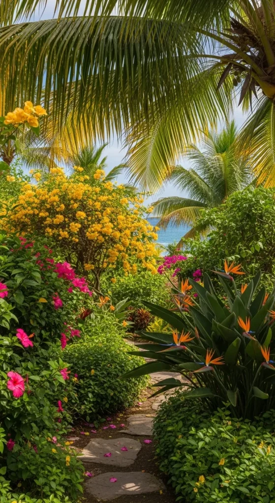 Bring a touch of the tropics to your garden with vibrant and exotic colors. Think fuchsia, hot pink, bright yellow, fiery red, and deep purple. Tropical flowers like hibiscus, bird of paradise, and bougainvillea are perfect for this palette. This color scheme works well for creating a garden that feels like a mini-vacation, full of life and energy. Adding large-leafed plants or palms can enhance the tropical vibe and make the colors truly pop.