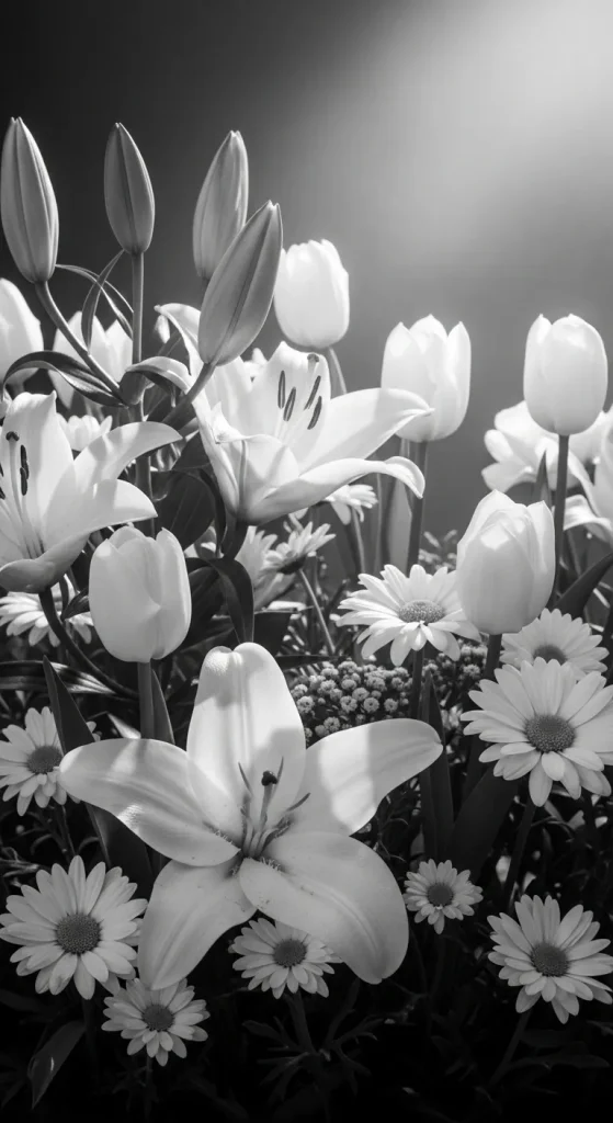 Simplicity can be striking. A monochrome palette focuses on shades of a single color, creating a sophisticated and cohesive look. Imagine all-white gardens with white tulips, daisies, and lilies, or a purple-themed garden with lavender, iris, and allium. Monochrome gardens are particularly elegant in small spaces because they create a sense of unity and expansion. Adding greenery for contrast helps prevent the garden from feeling flat while keeping the visual flow intact.