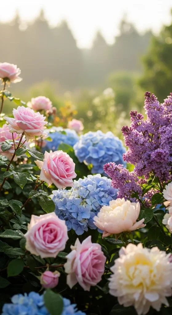 Soft, delicate pastel shades can turn any garden into a dreamy escape. Think blush pink roses, powder blue hydrangeas, lilac lilacs, and creamy white peonies. This palette is perfect for creating a romantic and calming atmosphere, ideal for a garden where you want to relax or enjoy tea with friends. Mixing pastel shades together requires balance, so ensure each color has its own space to shine. Adding light green foliage can enhance the softness and elegance of this palette.
