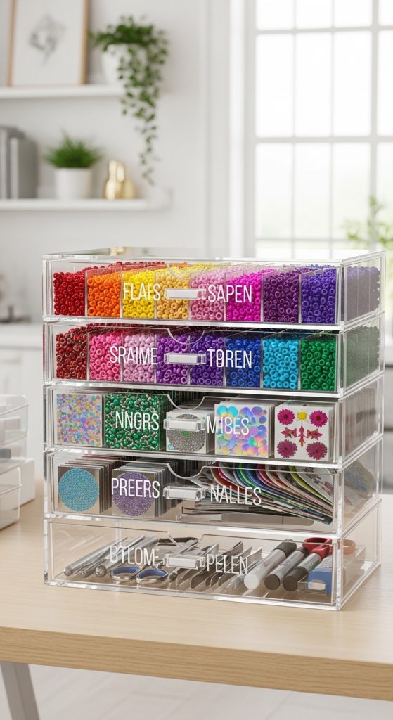 Transparent drawer units are ideal for organizing small items like beads, stickers, stamps, and embellishments. When everything is visible, you waste less time searching.